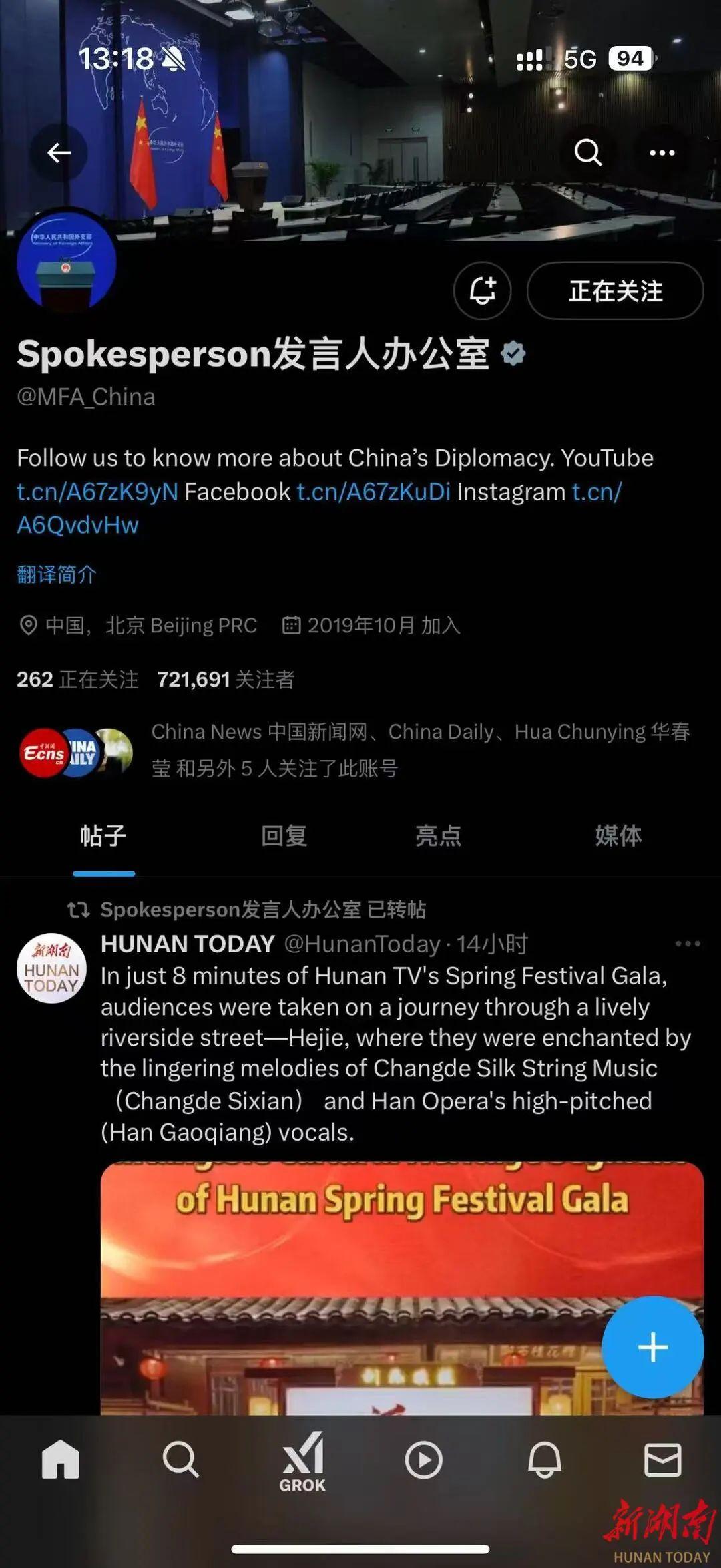 今年1月27日,“湖南春晚非遗八分钟”视频被外交部发言人办公室官方账号转发推介,收获关注无数。