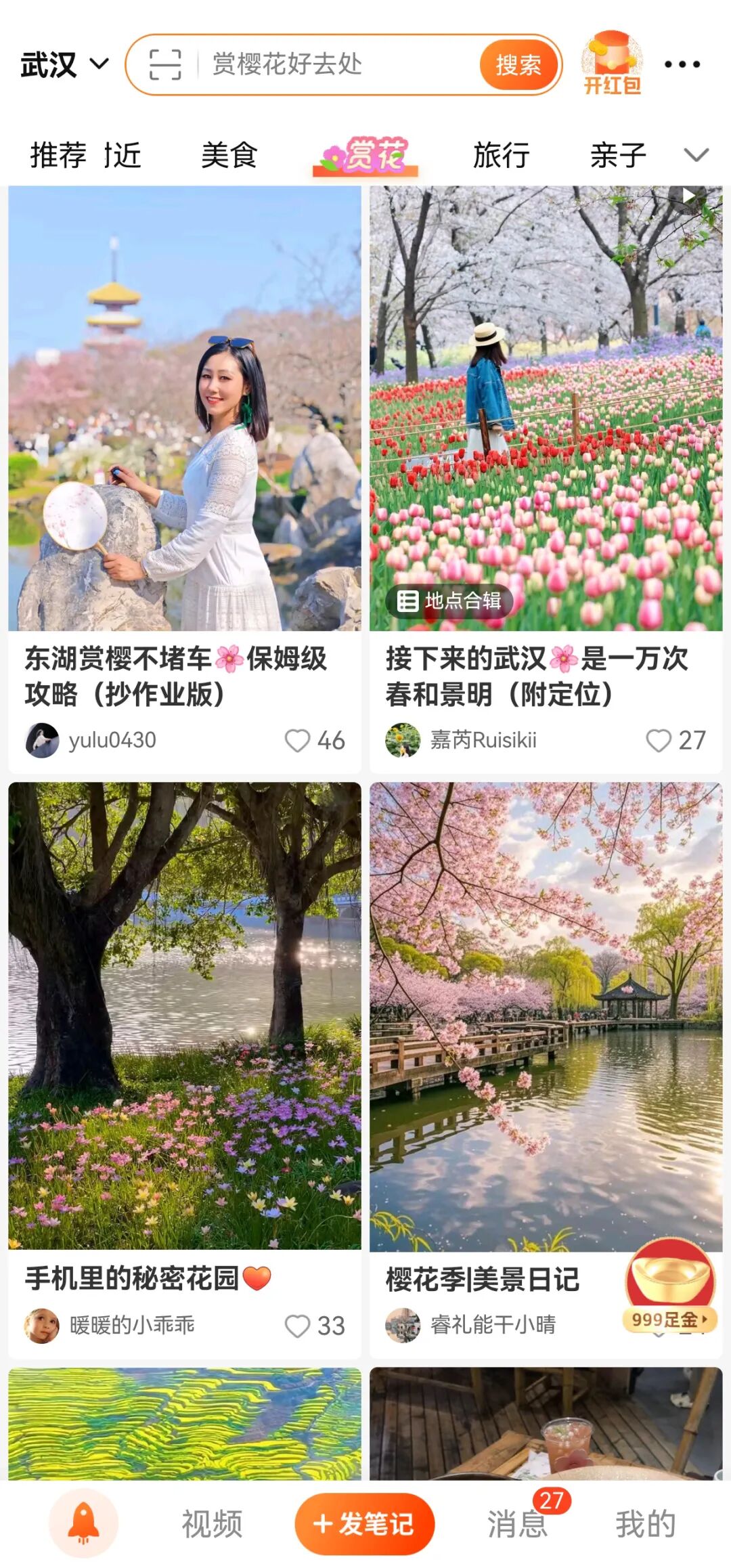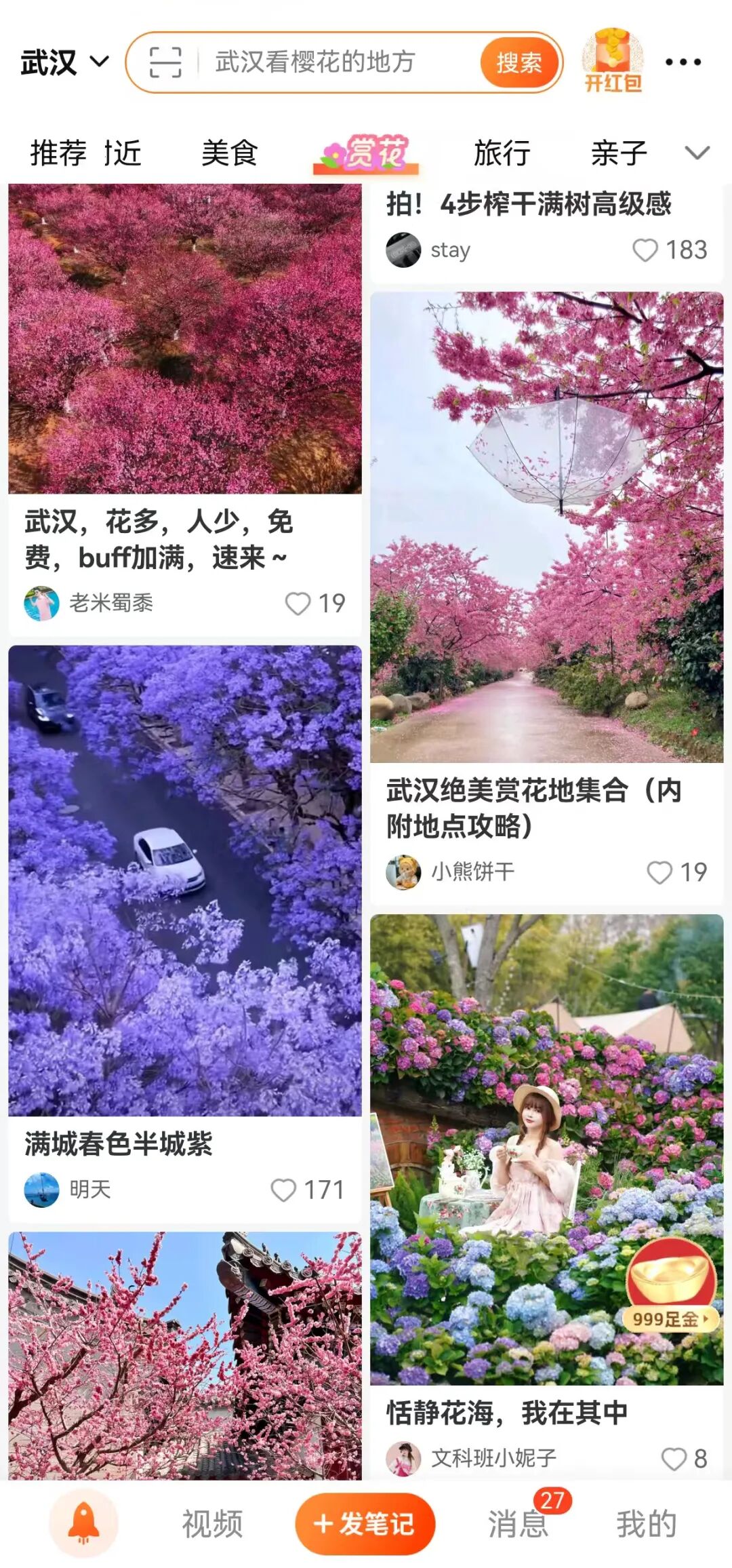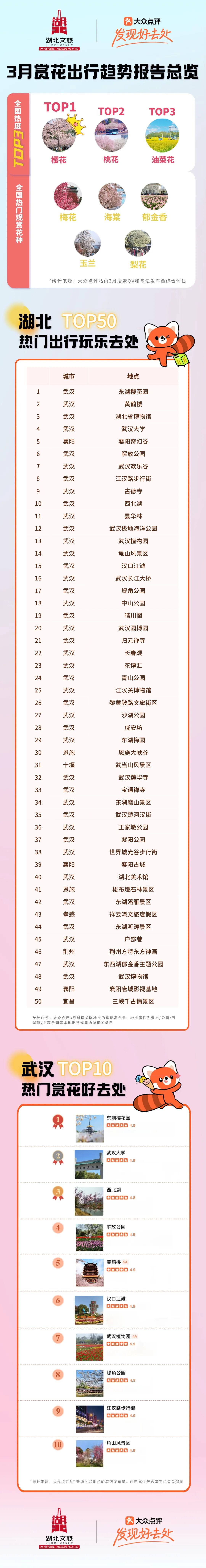春日的武汉,作为一座樱花之城,在樱花文化传播及文旅热度提升方面发挥了重要的推动作用。基于此现实,大众点评笔记与湖北文旅首次合作,联合制作了樱花季的赏花趋势报告。在#跟着点评趣迎春等系列征稿活动中,有6000+位武汉作者发布了樱花季的玩乐笔记。结合站内数据与武汉作者的本地见闻,我们将向游客推荐最新的樱花赏花游乐趋势:樱花,可以串联起公园、景区、商场、街区等多类线下场域,拉动餐饮、购物、体育、文娱等多种形式的消费,从一种季节性景观,转化成可持续的超级IP。