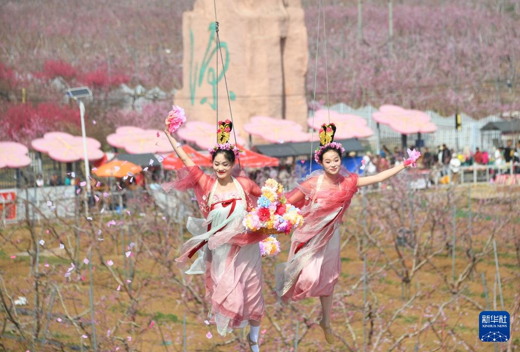 4月10日,演员在第二十七届北京平谷国际桃花节开幕式上表演。新华社记者任超摄