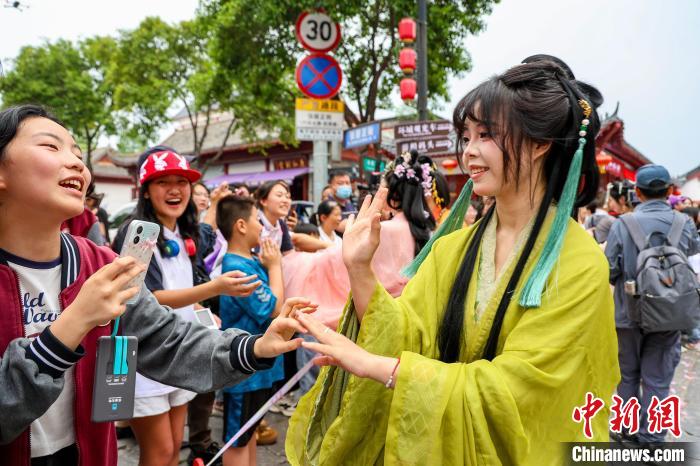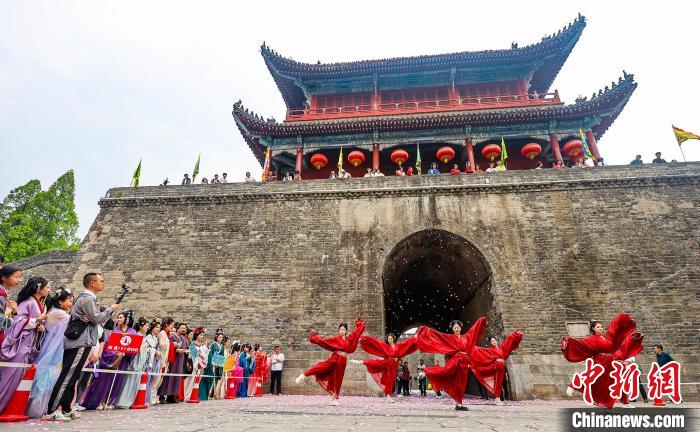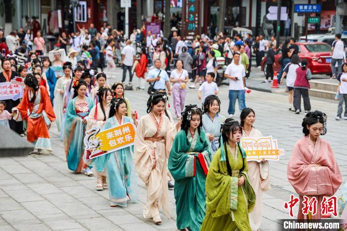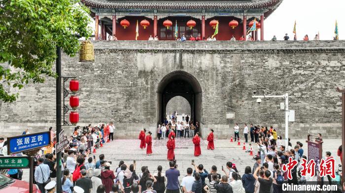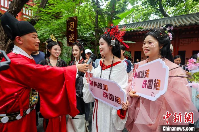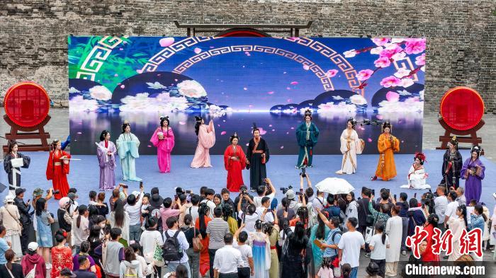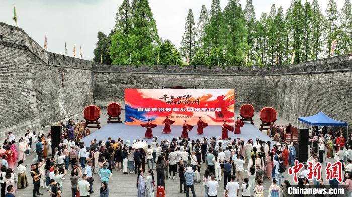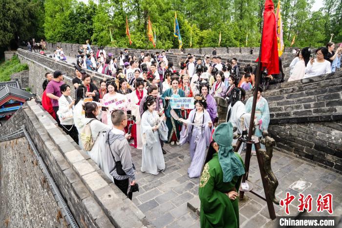图为战国袍巡游现场。(无人机图片)张梦瑶摄