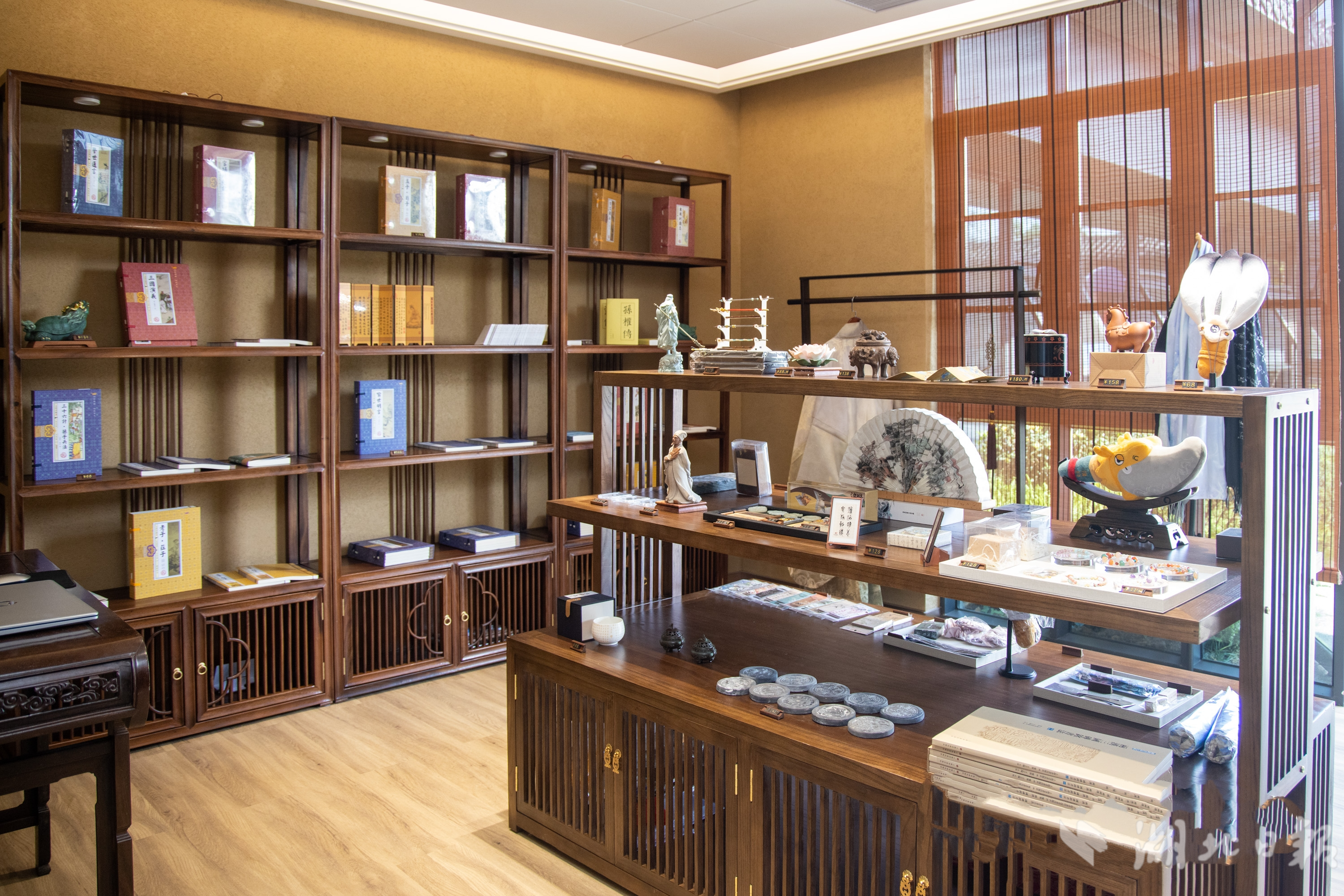 步入设法山居,多功能会议室、书吧、茶社、客房、文创展销厅、自助餐厅等一应俱全。从“淡泊明志”主题客房,到“七星坛借东风”互动研学场景;从以三国故事、中华文化为主题的书籍字画,到沉浸式汉服体验,设法山居打造出兼具历史厚度与情感温度的东方美学空间,让每一位来者,在山水环抱中了解三国历史,感受中华文化之魅力。