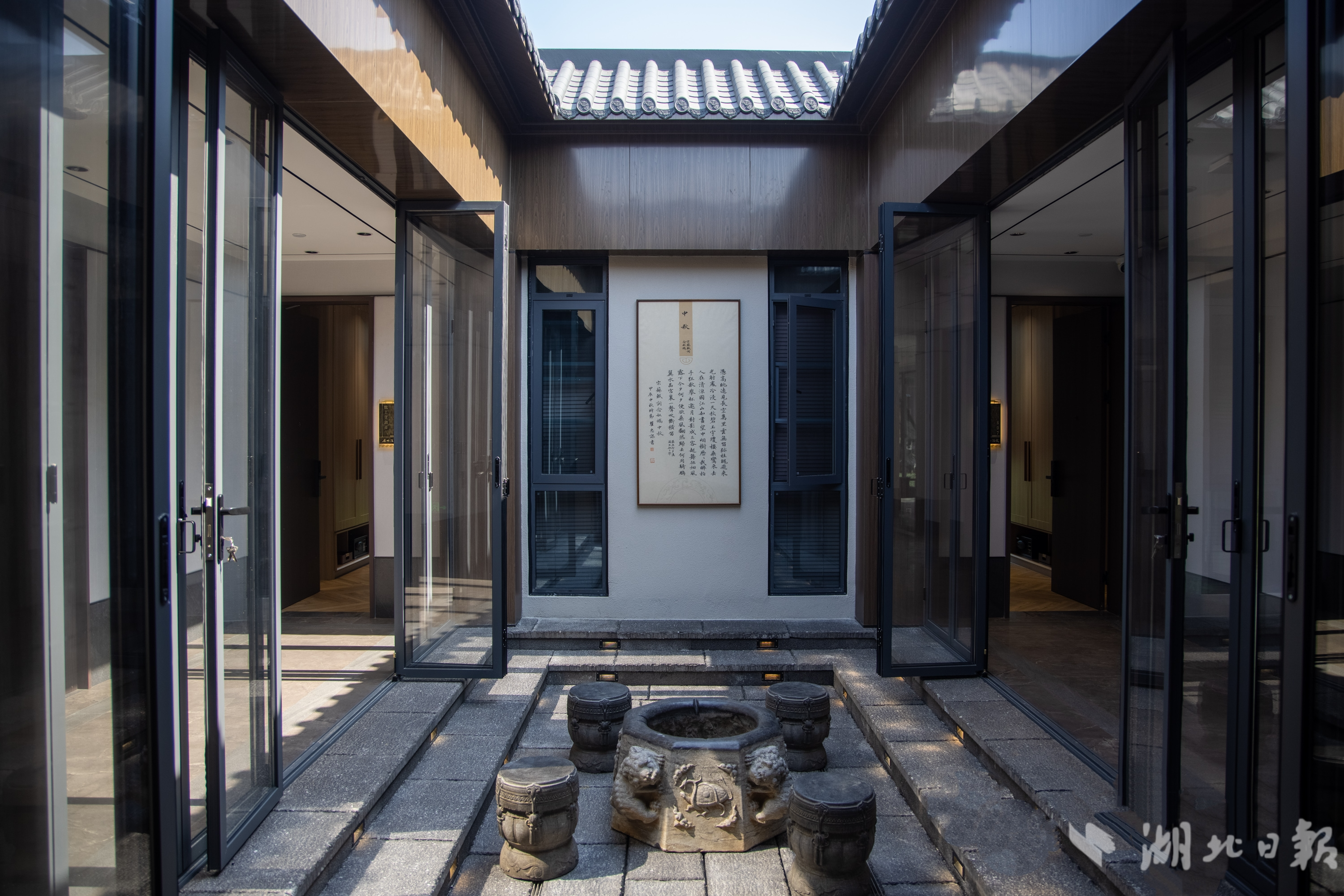 设法山居由武汉体育中心集团有限公司打造,总建筑面积2400m²,集文旅、研学、会议、住宿、餐饮、户外运动等功能于一体,在保留原建筑主体围合庭院式布局的基础上,融入三国文化元素,进行局部修缮改造而成。绿树掩映间,建筑白墙黑瓦、飞檐翘角、古朴厚重。中庭庭院内,草木葱茏、景致错落,古石桌椅等古朴雅致,诸葛亮铜像峨冠博带、高举羽扇、神态自若。