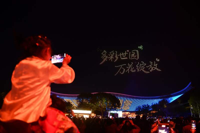4月28日,花园节开幕式,600架无人机表演。新京报记者陶冉摄