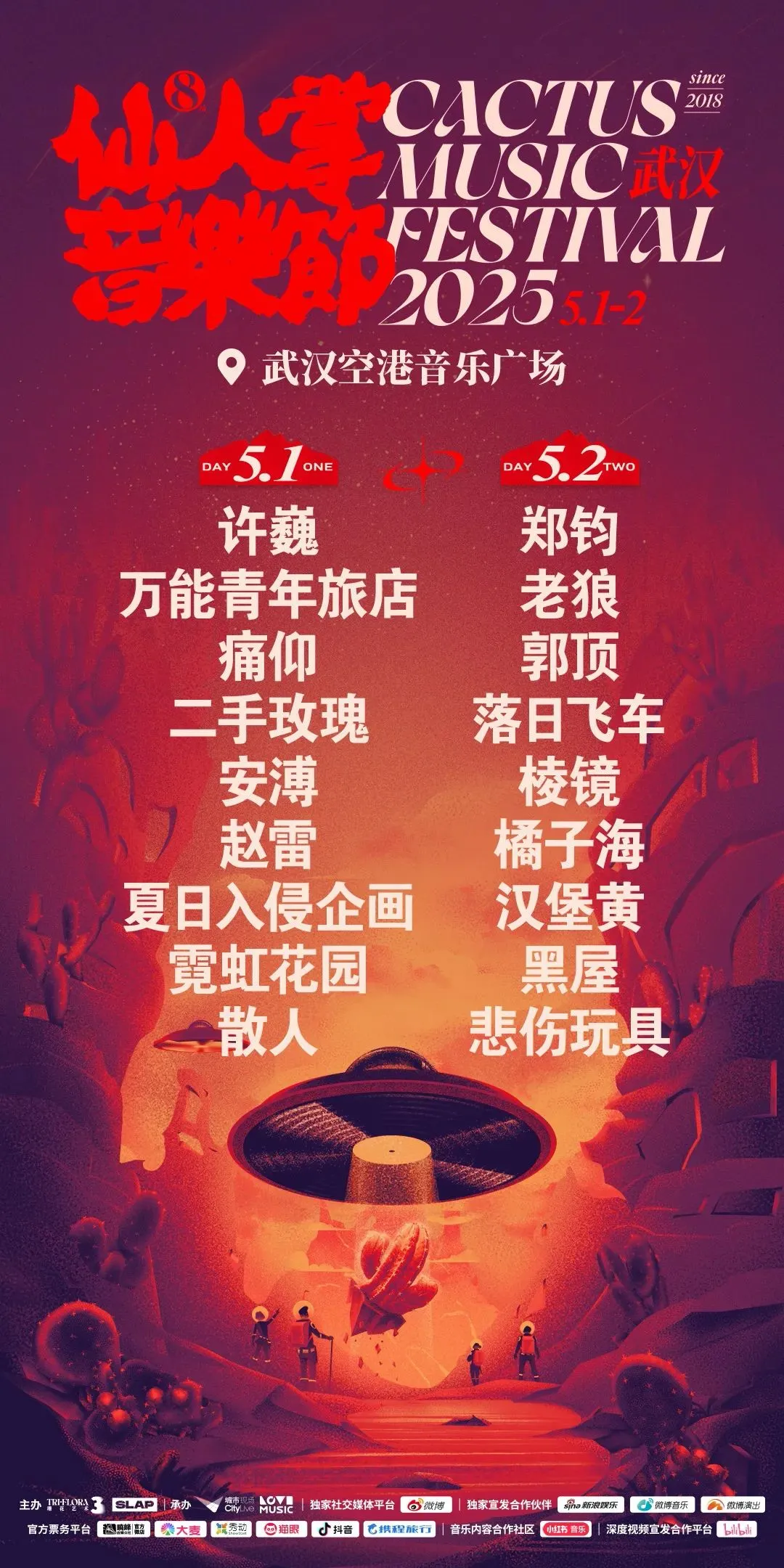 邀请许巍、郑钧、老狼、万能青年旅店等音乐人及乐队,举办2025仙人掌音乐节。