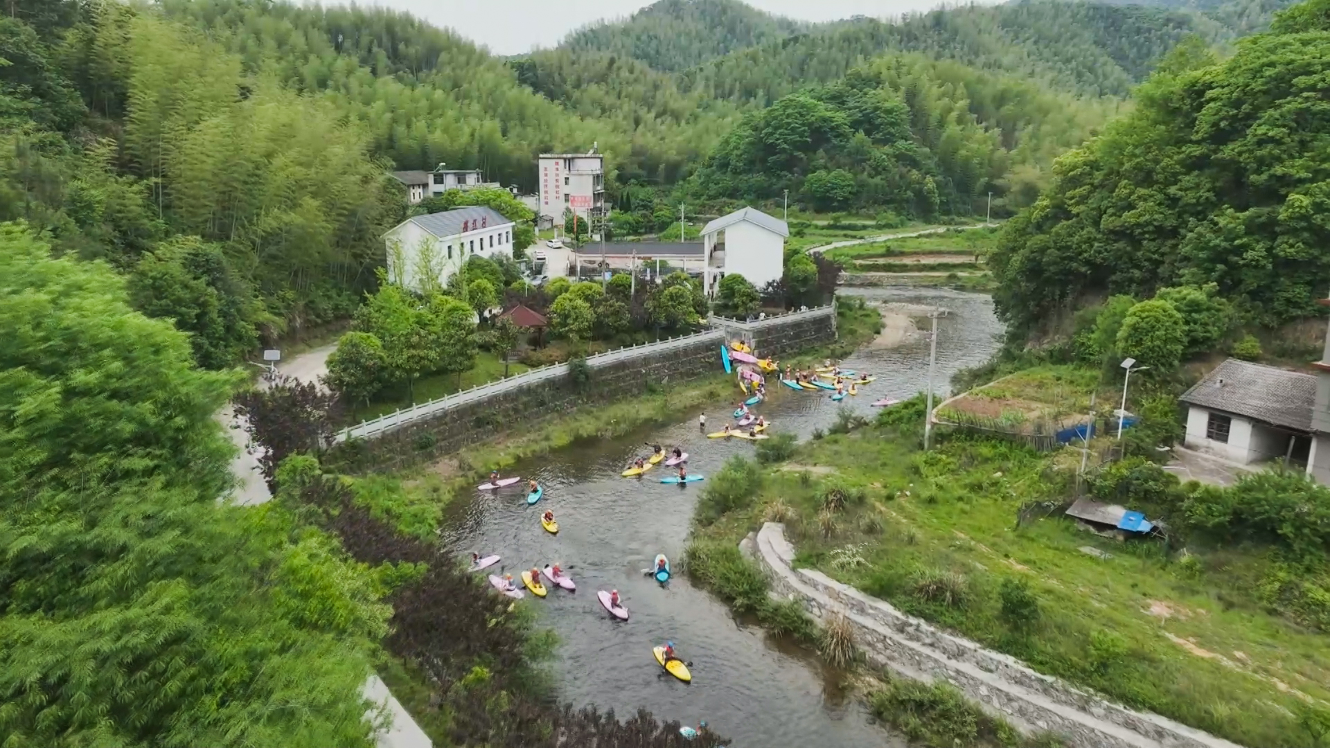 崇阳港湍急段与平缓段交错分布,水质清澈,为桨板运动提供了绝佳条件。当天,游客们从崇阳港上游出发,他们双手持桨,脚踏各色桨板,驰骋在水面。在约两个小时的漂流时间里,游客们一边饱览两岸秀美风光,一边体验桨板运动带来的快乐。