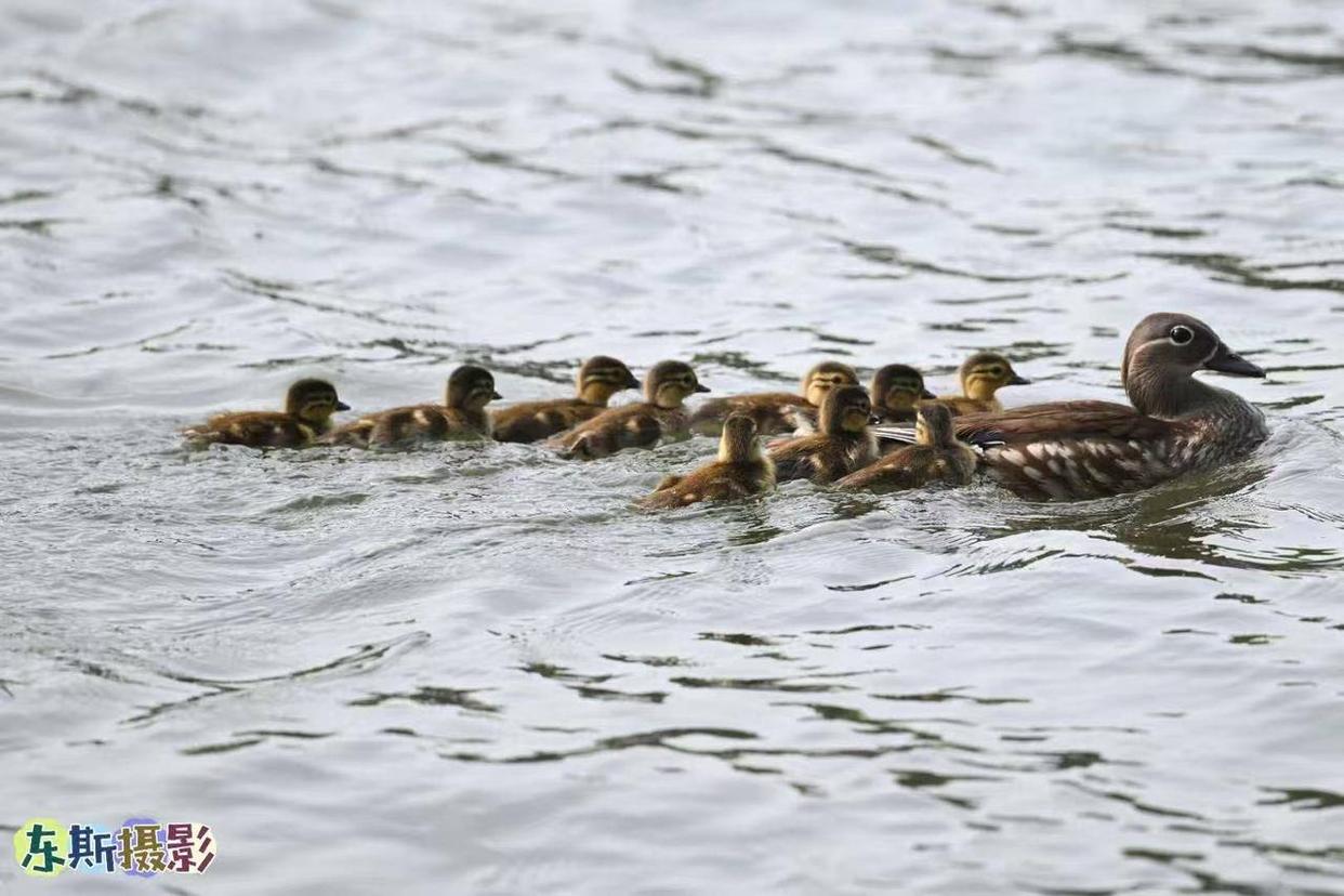 今晨,他一直密切观察着,活泼呆萌的小鸳鸯跟着妈妈,经过断桥桥洞一直游到北里湖。