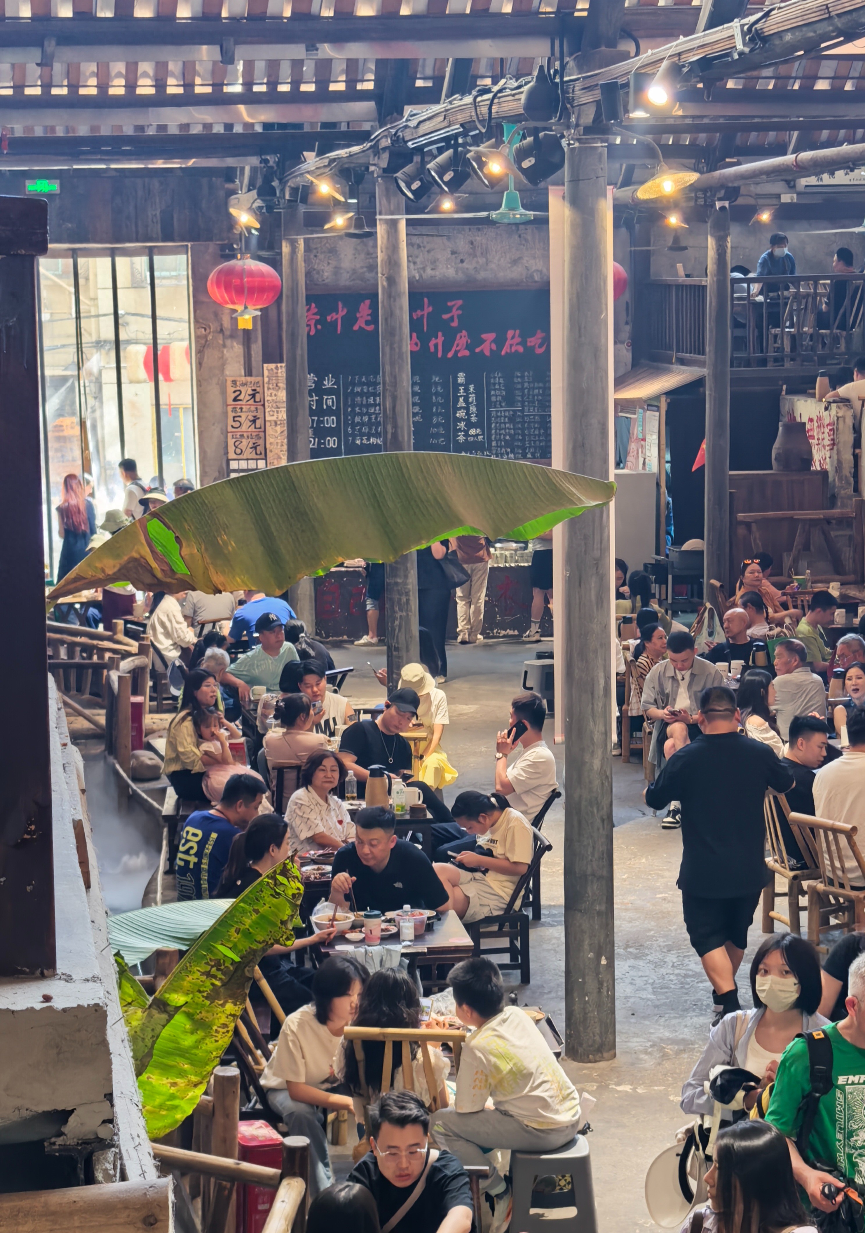 茶馆由二轻集体大礼堂改建,主体建筑完全保留了原貌。5000余平方米的空间里,食客品茶、吃包子、嗦粉,无处不是老长沙的韵味与市井气息。