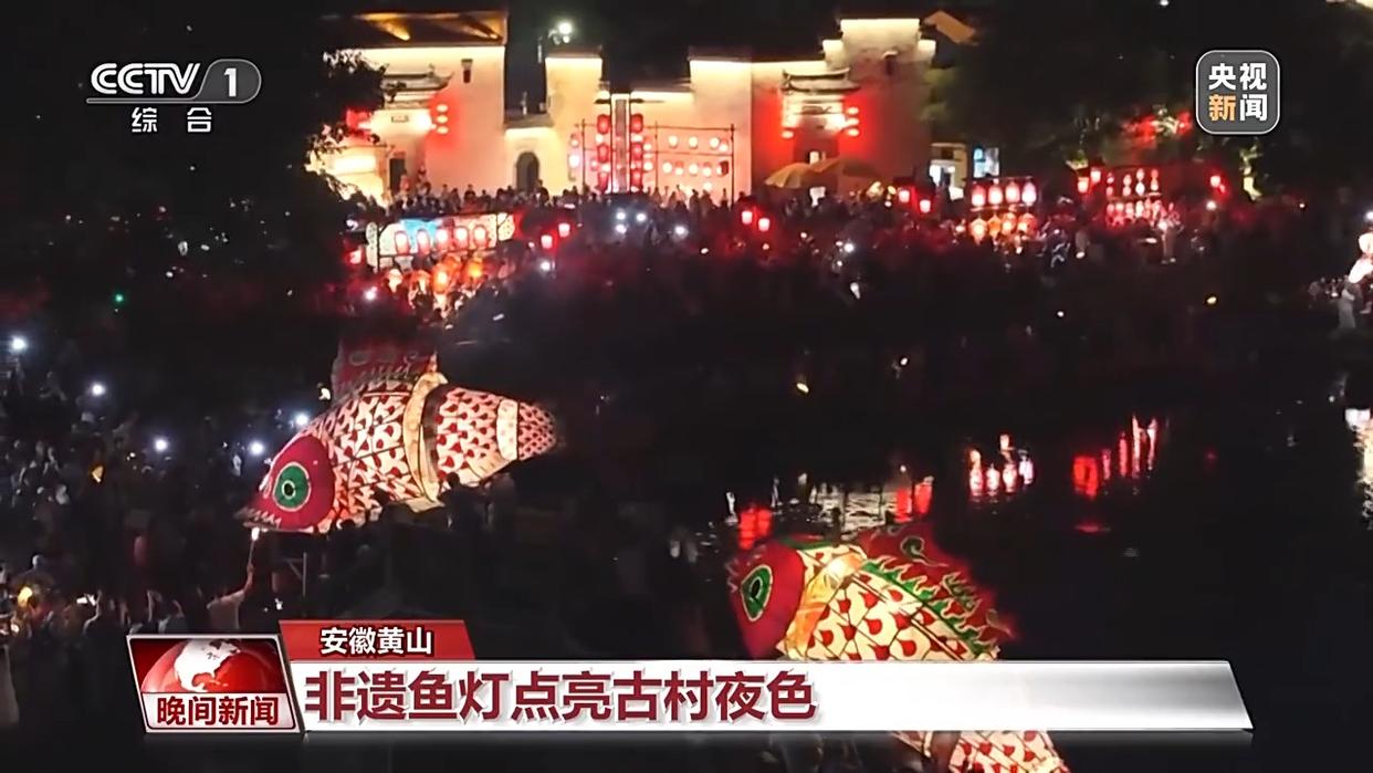 在安徽黄山,当地将徽派古建与非遗鱼灯相互融合,数十盏色彩艳丽的鱼灯在青石板巷与水系之间流转游弋,宛如一尾尾灵动的锦鲤穿梭于水墨画卷之中。游客除了现场观赏非遗鱼灯表演,也可以手举小巧灵动的鱼灯加入鱼灯巡游队伍,共同形成“百鱼绕村”的壮观场景。