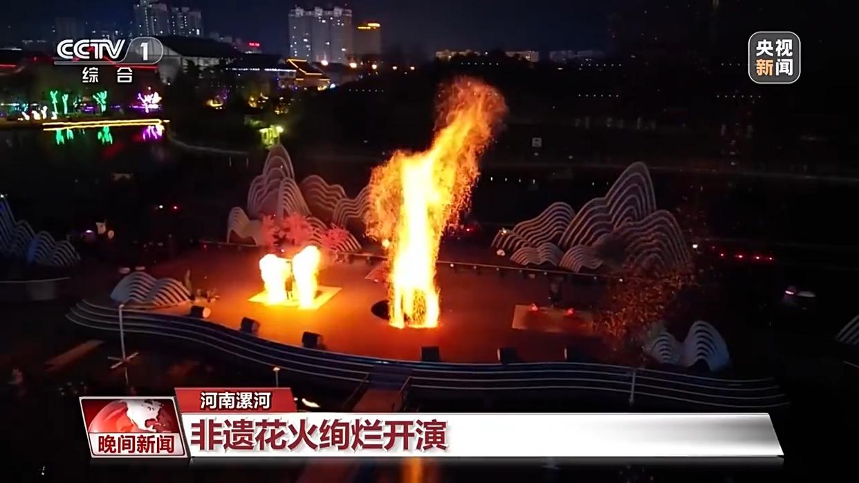 在河南漯河神州鸟园,一场非遗八大花火绚烂开演。演出沉浸式还原了开元五年,杜甫和父母寄居郾城,经历百姓打铁花共庆开元盛世的场景。武术、舞蹈、花火结合,打铁花、风火轮、火壶、喷火、飞天凤凰等八大非遗花火依次上演,璀璨绚丽的花火呈现出“铁树银花落、万点星辰开”的景象。