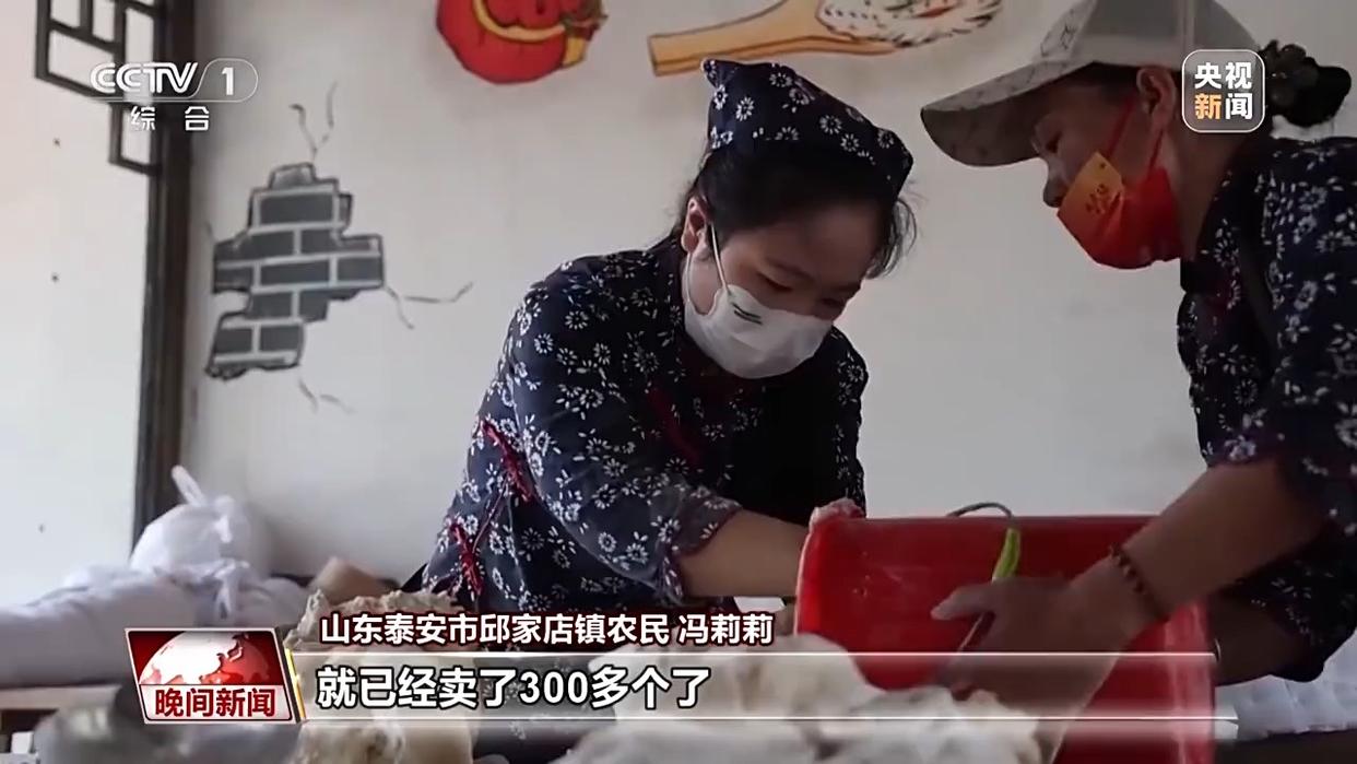 山东泰安市邱家店镇农民 冯莉莉:每天天不亮就得起来准备干活。这还不到晌午,就已经卖了300多个,看着大家吃得开心,还一个劲儿夸我们的馒头香,再累也值得。