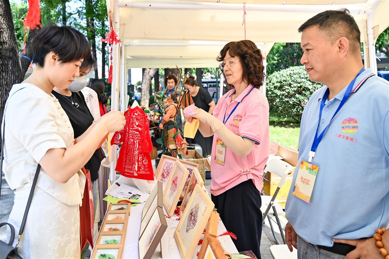 6月14日上午,由武汉市文化和旅游局、武昌区人民政府主办,武昌区文化和旅游局承办的2025年“文化和自然遗产日”武汉非遗宣传展示活动在武昌区斗级营街区举行。