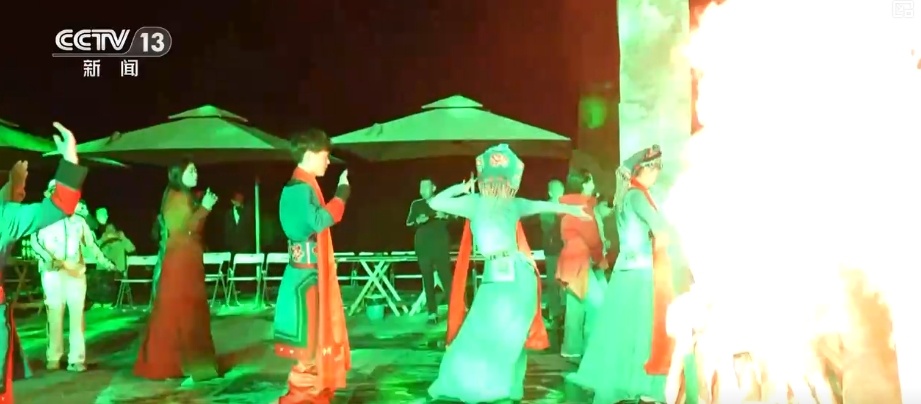 等到夜幕降临,村民们自编自演的民俗节目正式上演。高亢的歌声和曼妙的舞姿展现出本地村民的淳朴自然,热情也感染了远方的游客。