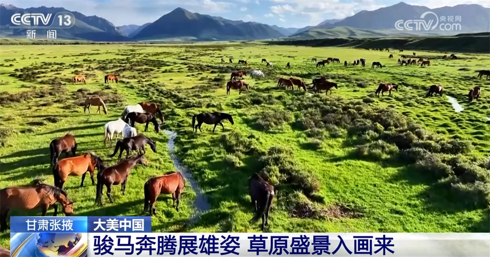 甘肃张掖:骏马奔腾展雄姿草原盛景入画来