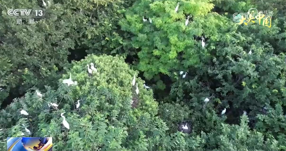 湿地生态美,鹭鸟舞蹁跹。离荷塘不远的一座小岛上,数千只白鹭、夜鹭闹中取静,“相约”在此筑巢、栖息、繁衍。