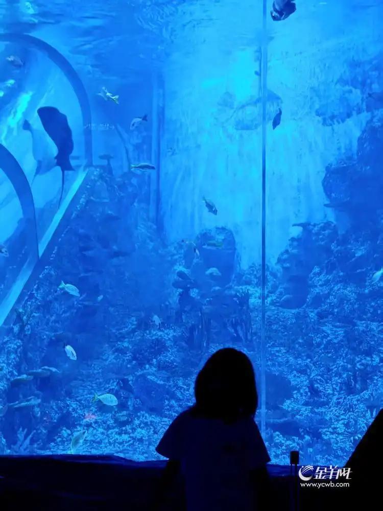 孩子们躺在帐篷里,巨大的观景窗隔绝了海水,却将整片蔚蓝温柔地拥入怀中。鳐鱼在眼前悠然游过,珊瑚在身侧无声漂浮,枕着这片流动的深蓝,亲子家庭怀抱着无限遐想,在“海底”安然入眠,开启一次沉浸式的“深海梦境”体验。