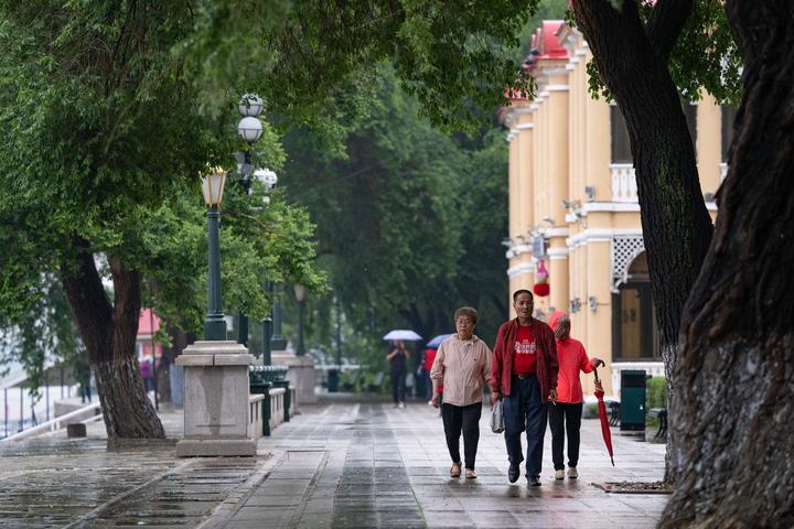 这座全长1750多米的带状公园沿江铺展,如同一条镶嵌在堤岸上的绿色绸带,唤起哈尔滨人的共同记忆。