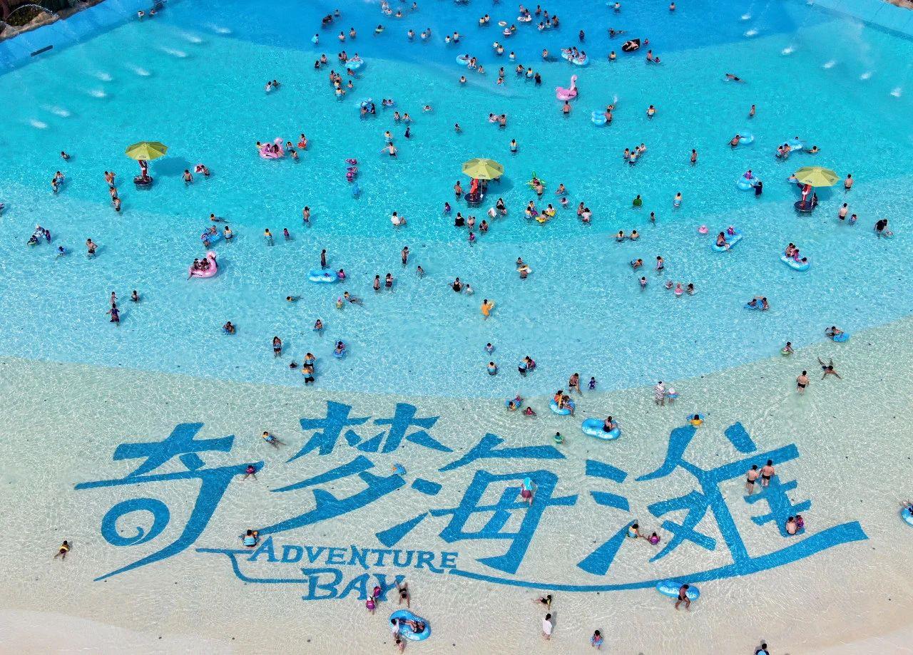 与奇幻谷毗邻的奇梦海滩则是另一番景象。洁白的浪花伴着欢快的旋律翻涌着。游客们三五成群,抱着游泳圈快步走向造浪池。汇聚顶尖娱水设备、沉浸式互动演艺、缤纷水上活动,奇梦海滩水乐园是众多游客夏日消暑娱水的好去处。这个暑期,园区还融入了泰式泼水狂欢、水上互动、特色美食等东南亚特色,以及水上电音派对、高颜值NPC等,让广大游客在嬉水的同时畅享缤纷夏日。