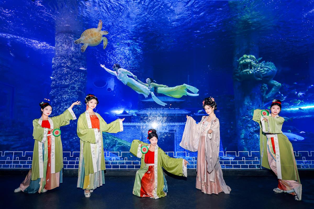 水下武侠幻境秀《汉水侠影》拉开帷幕。这部以宋元襄阳之战为背景的沉浸式“大秀”可谓创意十足:6米深的亚克力鱼缸变成了舞台,水下舞蹈与传统武术相结合,演绎出郭靖、黄蓉“侠之大者,为国为民”的壮丽情怀。