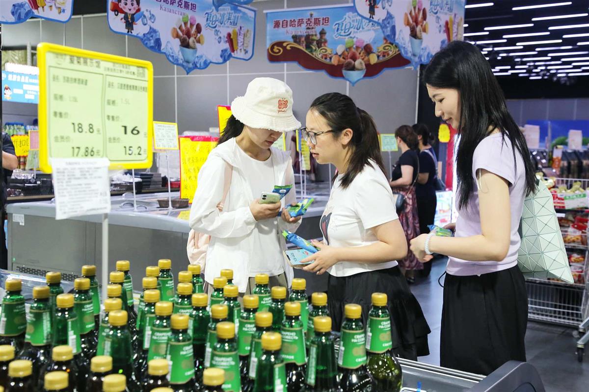 来自欧洲、中亚的啤酒、冰激凌、蜂蜜……近期高温不断,在爱菊健康生活体验馆的货柜上,琳琅满目的海外“土特产”吸引了不少市民选购。