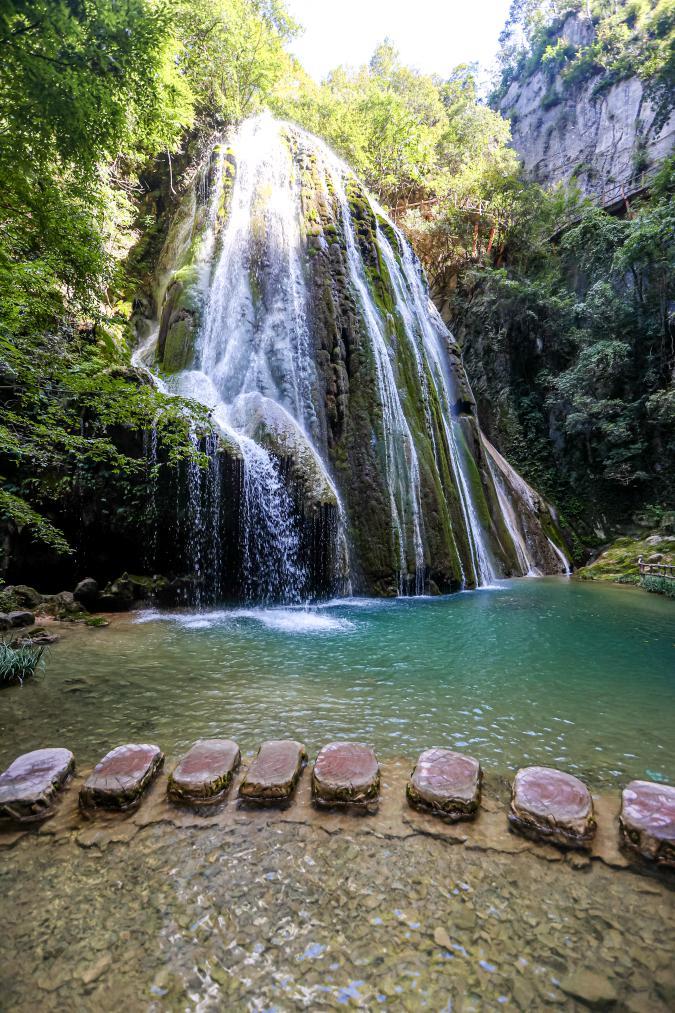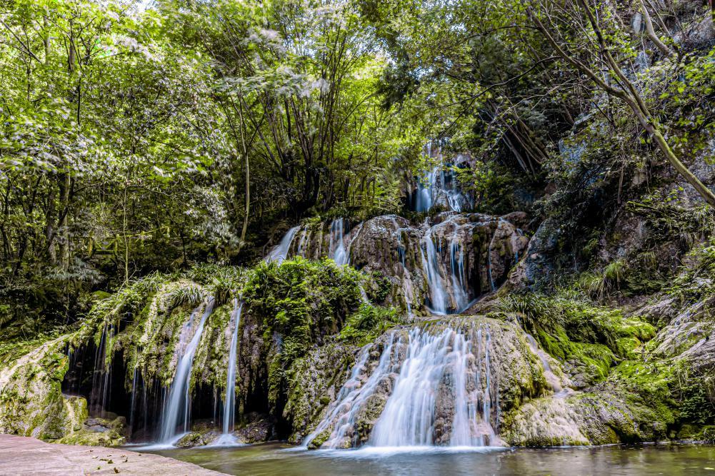 雄鹰瀑前,瀑布从陡崖飞泻而下,水帘如鹰翼舒展,气势磅礴,与周边峭壁、古树构成“雄鹰展翅”的天然画卷;三叠瀑前,三级瀑布层层跌落,水流在岩壁上碰撞出万千水珠,形成“大珠小珠落玉盘”的视觉盛宴。