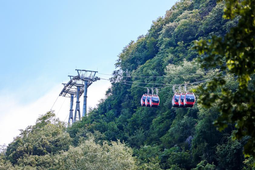 虽已立秋,但暑气未消,而景区内却因独特的喀斯特地貌与茂密植被形成天然氧吧。沿着青石板步道徐行,采风团成员纷纷举起相机记录沿途风景:两侧峭壁如削,藤蔓垂悬如帘,潺潺溪流在岩缝间跳跃,溅起的水珠在阳光下折射出细碎彩虹。