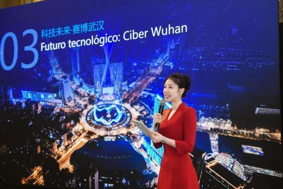 憨态可掬的数字江豚用流利的西班牙语向到场的领导与嘉宾亲切问候:¡Hola a todos!Soy Tunboo, un delfín del río Yangtsé en China.Bienvenidos a Hubei! (大家好!我是豚宝,来自中国湖北的长江江豚)这一声跨越山海、充满湖北温度的问候,瞬间拉近了与西班牙朋友的距离,引发现场一阵惊喜的掌声。