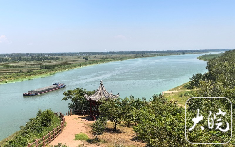 记者注意到,浮山上新建了一个小长城,高处是一个烽火台,有人说烽火台处原有一个亭子,是灵岩寺僧人和浮山百姓为纪念大诗人大文学家苏东坡到此一游而修建的。站在此处观淮河,淮水从西边弯弯曲曲的河道流淌过来,景色十分秀美,让人流连忘返。