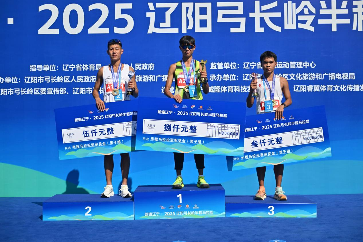 男子半马前三名选手领奖(央广网发弓长岭区委宣传部供图)