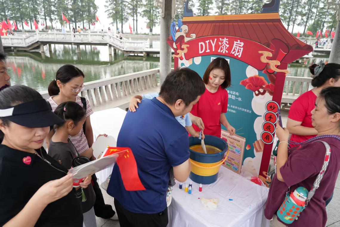 10月1日至3日,碧潭观鱼将举办听涛游园会。漆扇制作区,家长与孩子们共同协作,在漆扇上描绘心中的国庆图景;投壶区,游客们在投掷与命中的乐趣中,切身感受传统游艺历久弥新的独特魅力;悬挂挑战区,参与者双手自然悬挂,坚持60秒即可获得东湖之眼摩天轮门票。