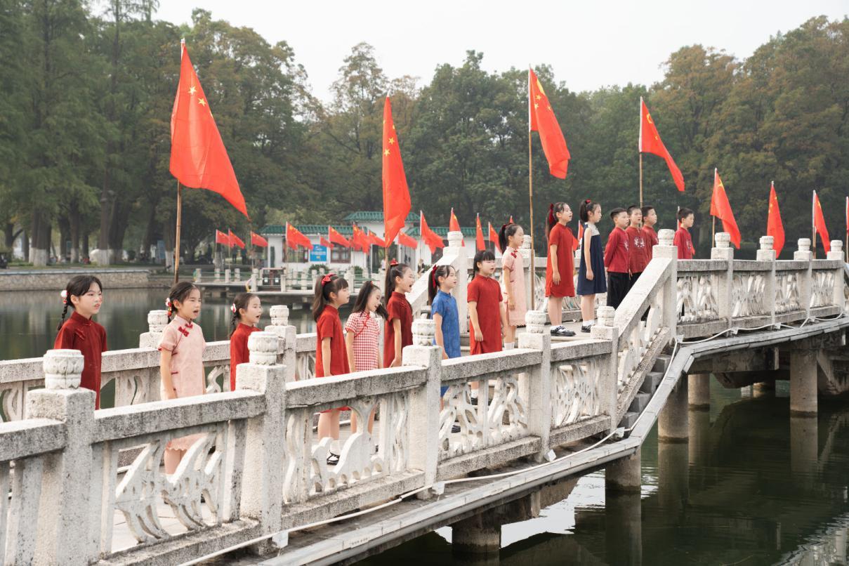 从梨园广场至长天楼、碧潭观鱼景点,沿途都回荡着深情激昂的歌声。“看到如此壮观的场面,心情也变得澎湃起来!”来自陕西的游客程女士正沉浸在这欢乐又热烈的氛围中,她感慨道:“在东湖的感受非常好,这里景色很美,还能和这么多人一起庆祝祖国的生日,给我留下深刻的印象。”