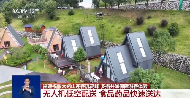 总台记者彭雨佳:为了给游客带来更加便利的体验,今年,景区还配备了送餐无人机,游客们只需要扫码点餐,无人机就可以在十五到二十分钟内,把餐食送到山顶或指定观景平台。除了送餐,无人机还能随时配送应急商品、药品等。