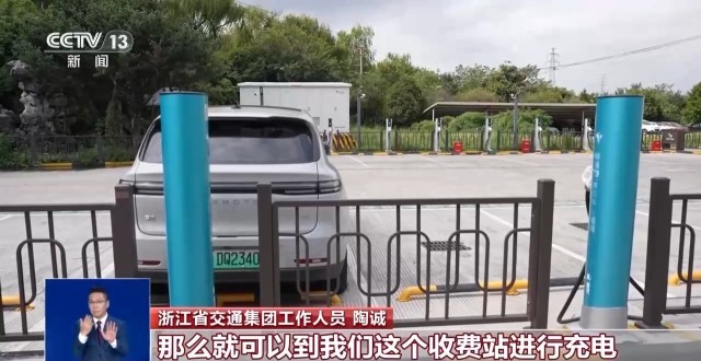 浙江省交通集团工作人员陶诚:充分利用收费站周边资源,专门划出了地块配备这些充电桩,高速服务区如果充电排队,就可以到我们这个收费站进行充电。