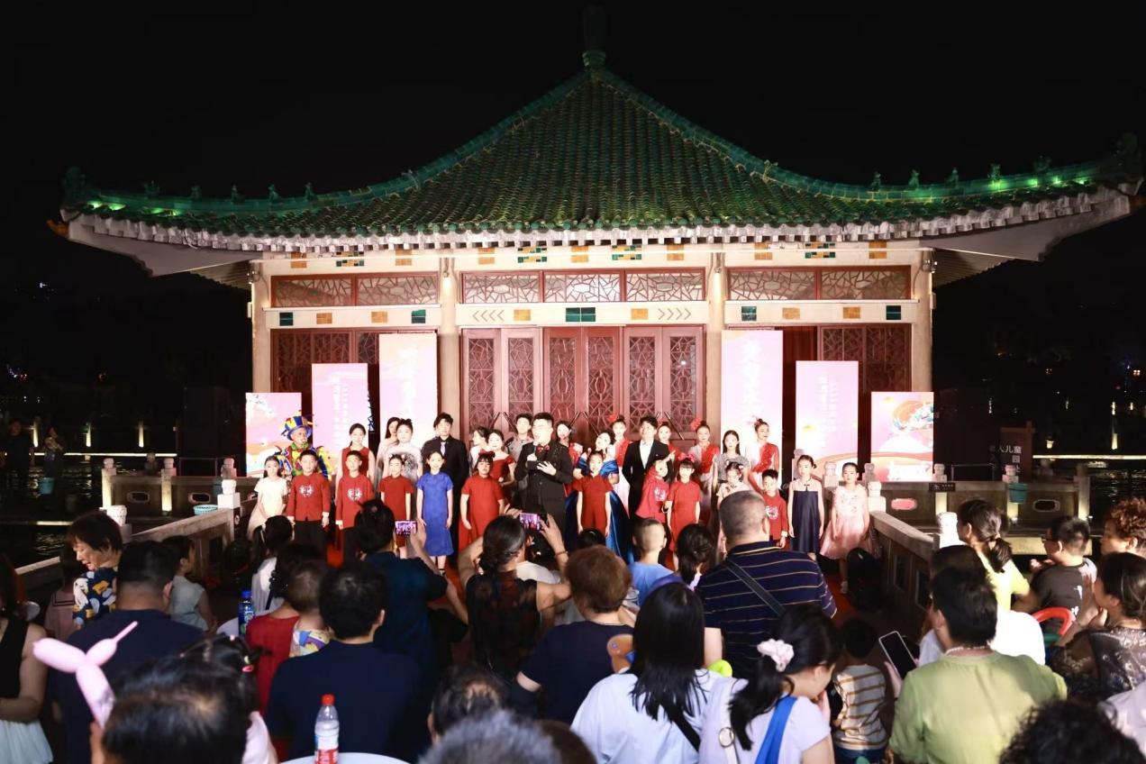 歌伴舞《灯火里的中国》以温暖旋律点亮夜色;童声合唱《月光》清澈空灵,传递着纯真祝福;活动在《我爱你中国》的全场合唱中达到高潮,深情歌声与湖光月色交融,为中秋之夜画上圆满句号。
