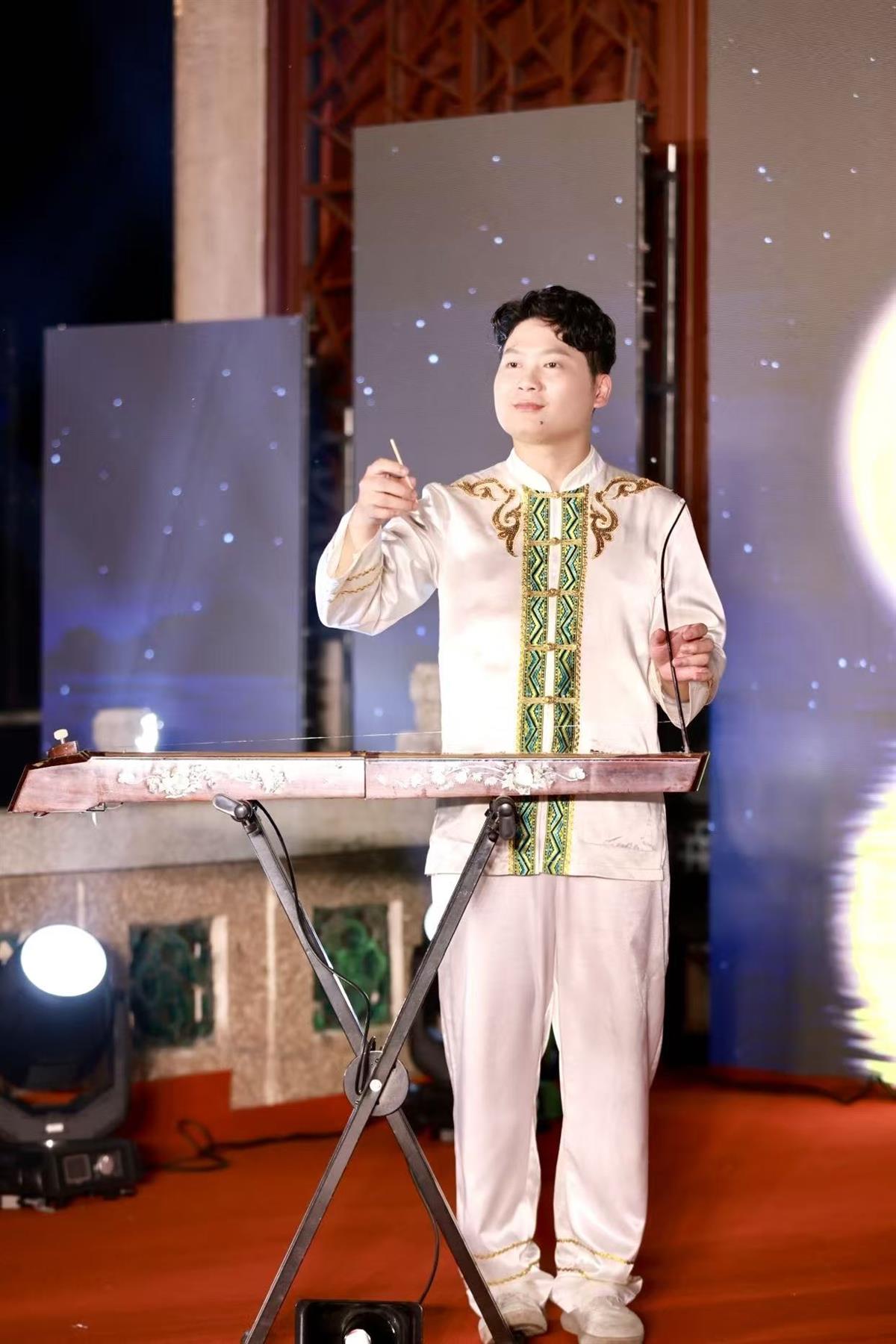 非遗独弦琴青年演奏家黄明仁与徐俏联袂演绎独弦琴,以“一弦成曲”的古老技艺,奏响穿越时空的月夜之音。琴韵悠远,技法精湛,引得现场掌声阵阵,也让这一非遗瑰宝在东湖的圆月下焕发新生。“太神奇了!一根琴弦竟能奏出这么丰富的旋律。”带着全家前来赏月的刘女士赞叹道,“在这么美的湖边听琴,感觉整颗心都静下来了。”