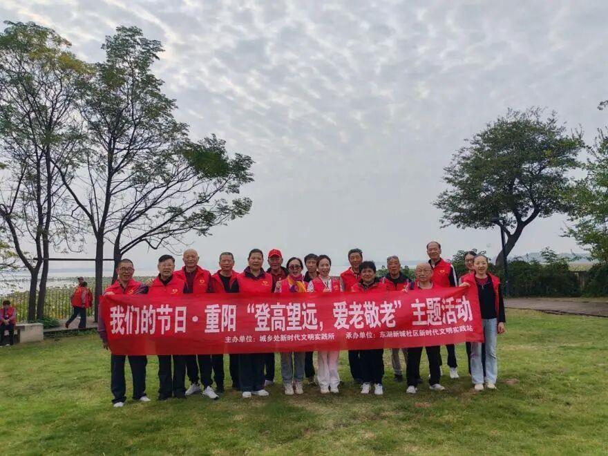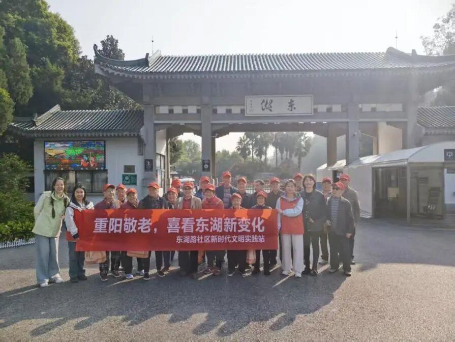 东湖新城社区组织“登高望远,敬老爱老”东湖绿道徒步活动,引领居民在秋色中健步同行;东湖路社区则邀请社区内八十岁以上长者共游东湖,实地感受东湖生态与文化新貌。登高不仅强身健体,更延续了重阳祈福的传统意蕴,也让长者们在湖光山色中感受到时代的变迁与社区的温暖。