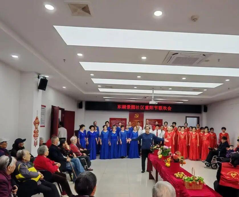 东湖景园、东风社区、吹笛社区分别举办重阳文艺汇演,诚邀社区长者共庆佳节。吉他弹奏、情歌对唱、民族舞、吹管独奏、歌舞合唱等节目轮番登场,精彩纷呈。《红旗颂》《夏秋谣》等经典旋律悠扬动人,《黄鹤楼》演奏余音袅袅。东湖景园小朋友带来的手势舞《中华孝道》,以纯真演绎传承孝义文化,彰显敬老情怀代代相传。