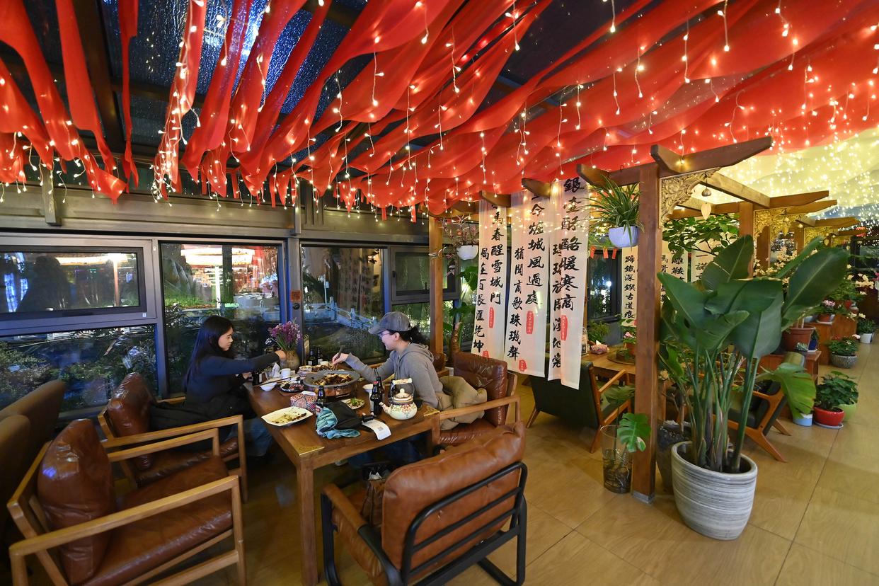 11月1日,人们在特色藏餐康定央切尔锅庄用餐。这里的锅庄是指历史上茶马古道上的商贸中介机构。新华社记者 肖潇 摄
