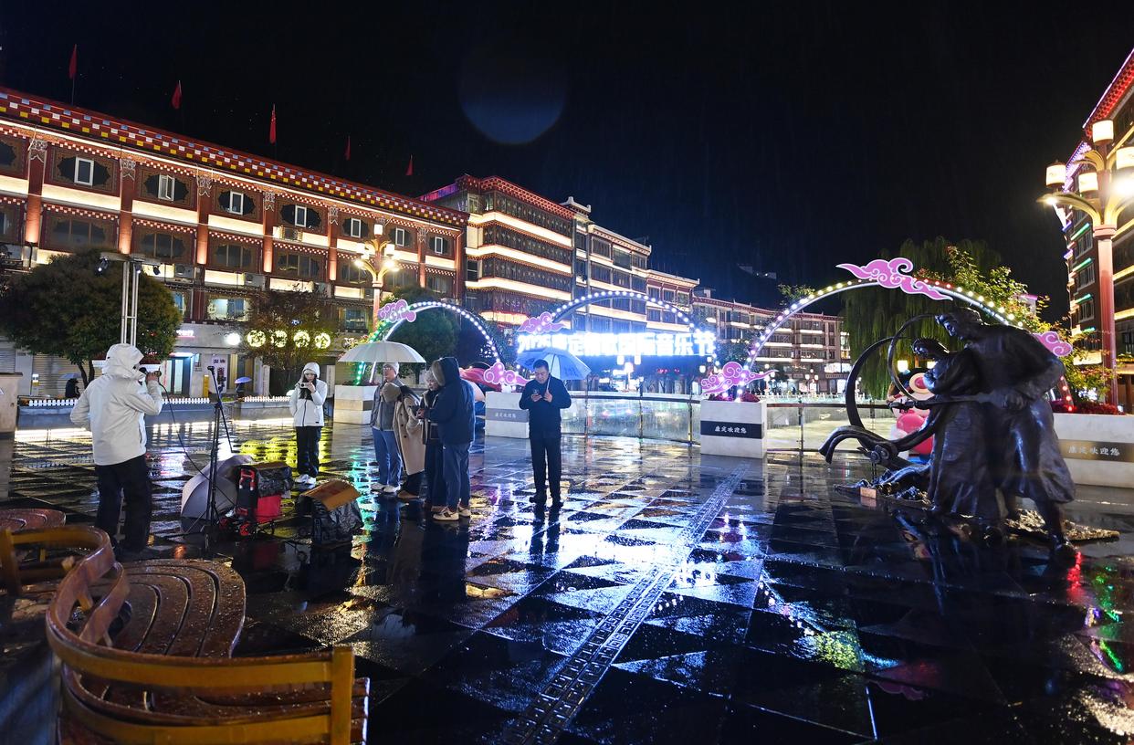 11月1日,人们在四川省甘孜州康定市折多河畔唱歌。新华社记者 肖潇 摄