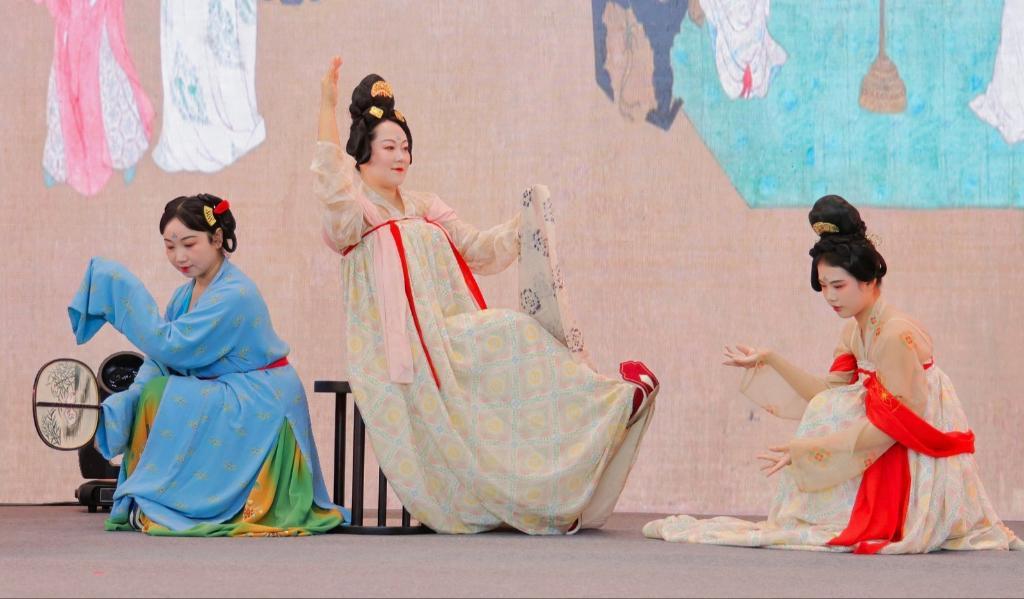 图为《捣练图》复原秀演出现场。新华社发夜幕初临,洛邑古城的大街小巷被盏盏灯笼照亮,灯光与人流交织,共同演绎“梦回大唐”的文旅盛景。换上精美的汉服,提一盏仿古鱼灯,与巡游的“李白”“杜甫”“唐代仕女”不期而遇,观看一场精彩的非遗表演,品尝地道的唐代茶点……氛围感直接“拉满”。