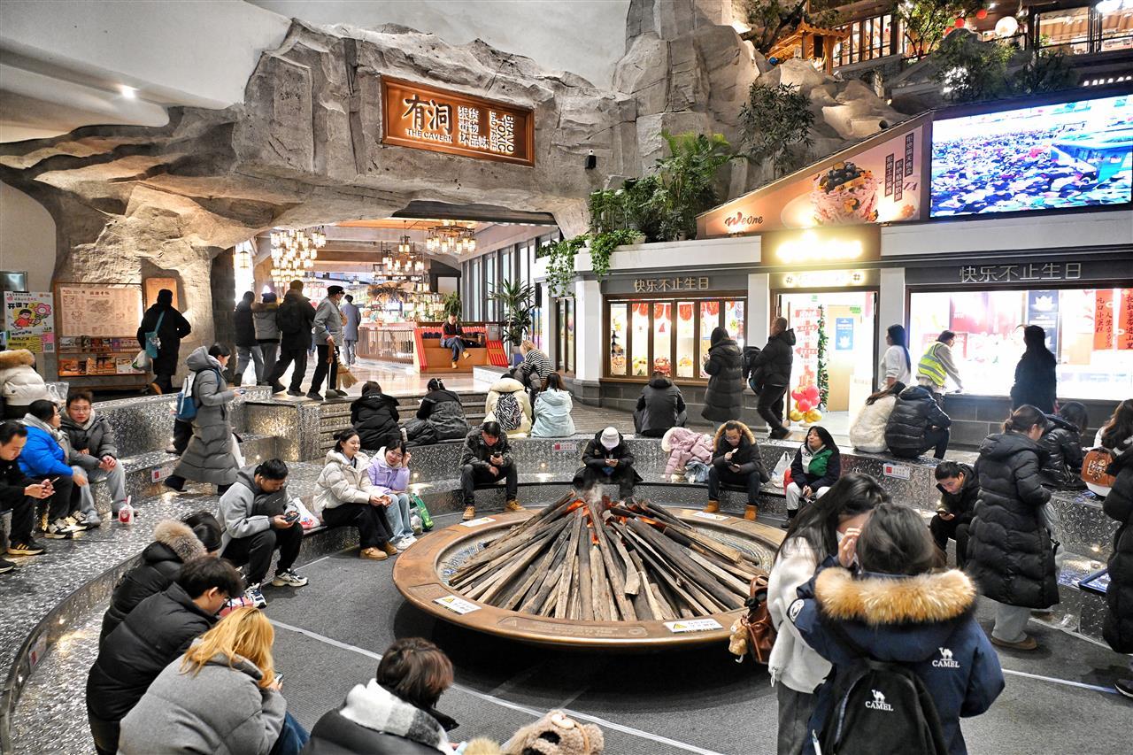 人们拾级而上,仿佛不是在逛商场,而是在游览一座充满烟火气的山中小镇。