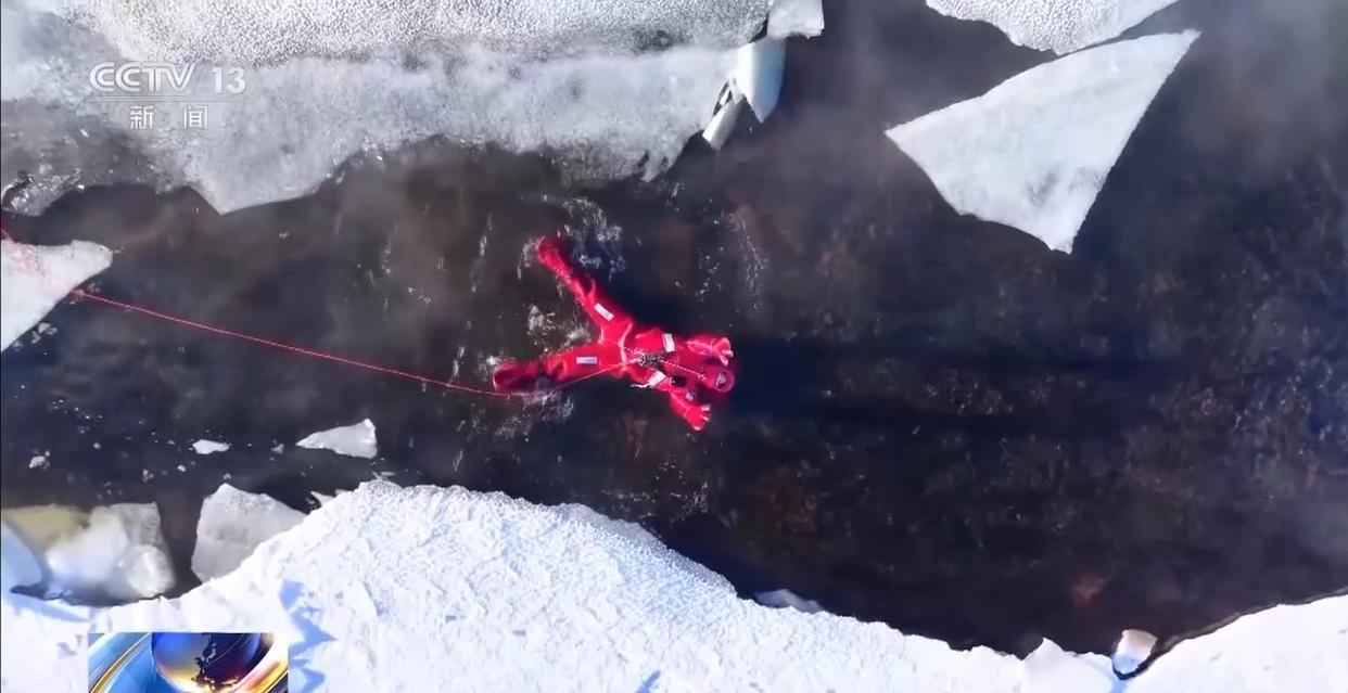 除了冰雪赛事,在内蒙古还有一项独特的极寒体验——“躺冰”。在呼伦贝尔额尔古纳市,零下40℃的极寒环境中,吉尔布干河因地热形成了独特的不冻河景观。