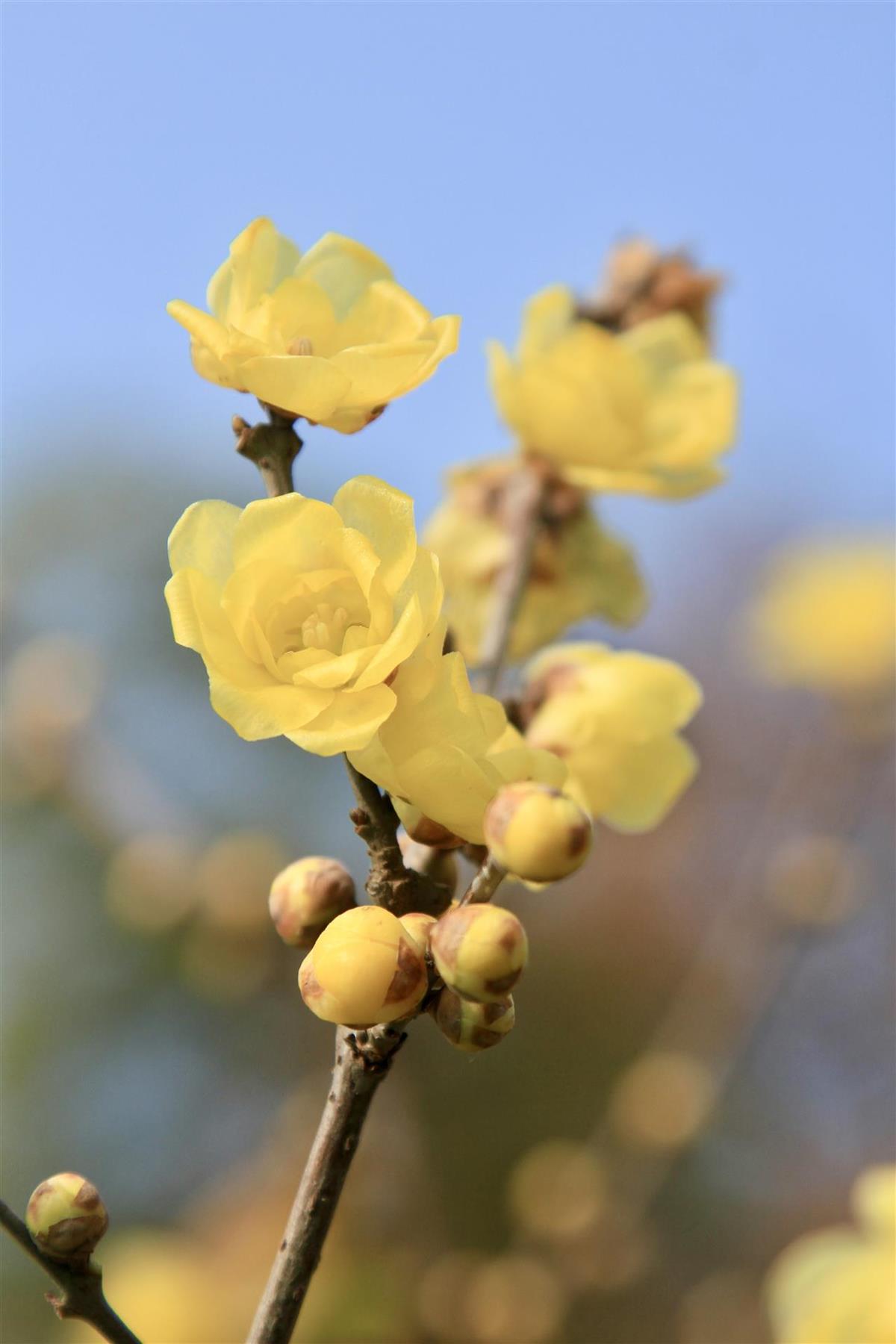 欣赏蜡梅,贵在眼观、鼻嗅、心悟。驻足花前,先观其形:金黄花瓣或如蜡笺薄透,或似蜜蜡凝脂;再赏其色,鹅黄、金黄,每一种色调都藏着冬日独有的温柔。继而俯身嗅香,清冽不浓烈,醇正不甜腻,深吸一口,便驱散了冬日的沉闷,换来身心舒畅。最后静心感悟,这凌霜傲雪的蜡梅,不与百花争春,独在寒冬绽放,是坚韧风骨的象征,赏梅亦是赏一份刻在骨子里的东方雅致。