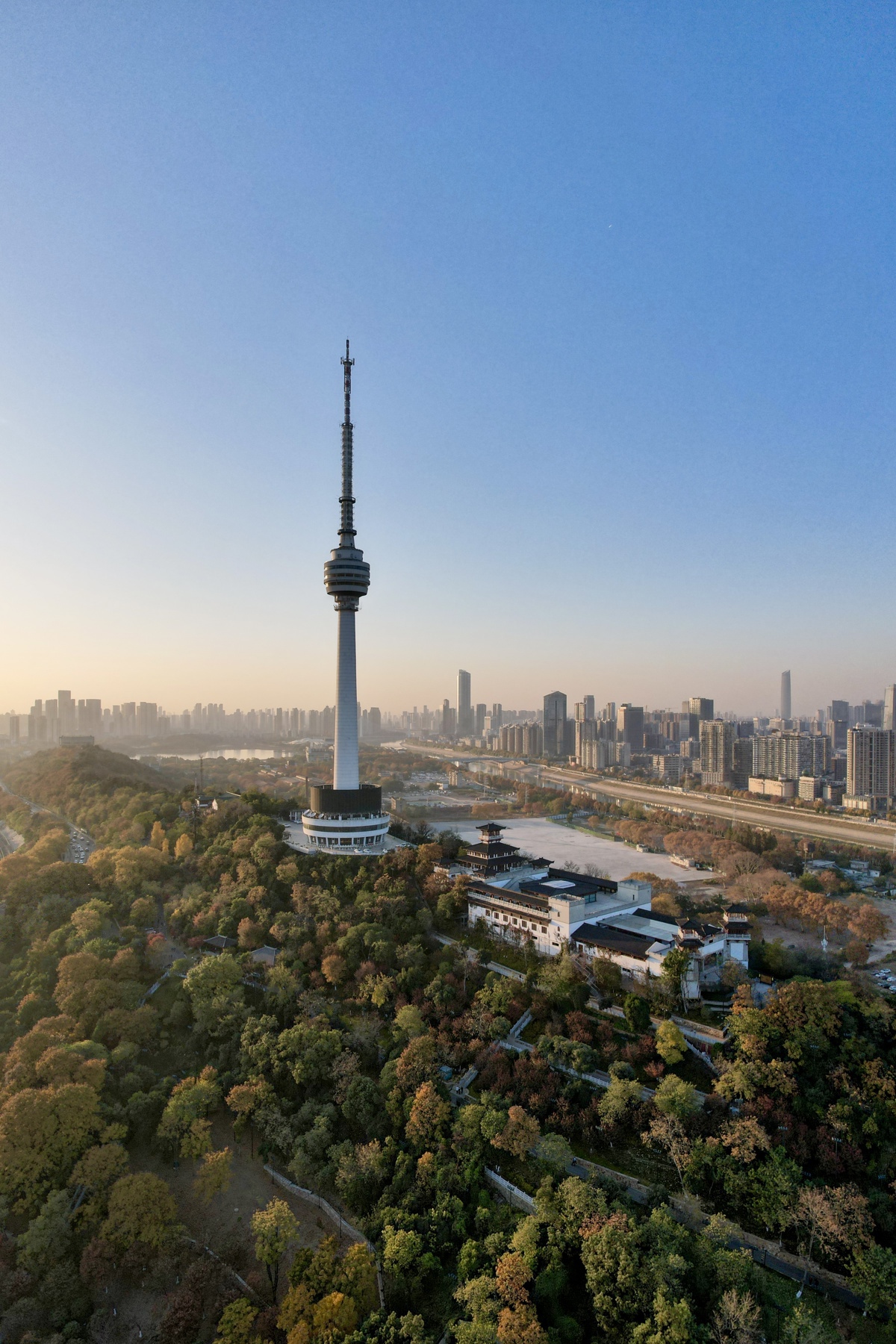 作为知音文化旅游区的核心建筑,知音殿背靠龟山电视塔,海拔约90.2米,坐拥“龟蛇锁大江”的绝佳观景位。从龟山东门沿“知音秘境”步道步行约15分钟,即可抵达这座保留古建飞檐风貌的殿宇。试运营期间,二层观景平台及茶咖区免费向公众开放,游客在此可一览长江大桥、鹦鹉洲大桥、晴川桥等五座跨江大桥的壮丽序列,远眺黄鹤楼与城市天际线相映成趣,更可清晰俯瞰两江交汇、江汉朝宗。