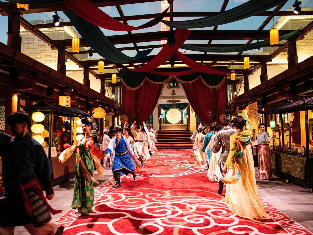 与此同时,一层沉浸式剧游空间正持续开放预约。核心项目“三国群芳宴”以三国文化为核心,打造涵盖剧情互动、主题舞剧与荆楚美食品鉴的沉浸式餐秀体验。游客通过“知音文化旅游区”小程序预约后,可换装进入场景,与张飞、黄月英、华佗等NPC互动,参与三国市集逛游、游戏解谜等环节。每日17:30起,五幕主题舞剧依次上演,融合《洛神赋》、鱼灯舞等经典舞段,每段演出后更配有鱼糕、黄陂三鲜等对应主题的楚菜美食品鉴,全程约2小时,让游客在味觉与视觉中穿越千年。