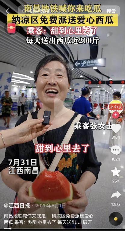 在重大节点,南昌地铁的应急能力与温情服务同样在线。2025年10月1日,南昌地铁迎来史上最强客流高峰,通过“分段布车+空车直达”模式,全线网加开174列次列车,最小行车间隔压缩至118秒,高效疏运客流,收获乘客“霸屏致谢”。夏季,翠苑路等地铁站成为市民的“纳凉天堂”,地铁还在纳凉区免费派送爱心西瓜,每日供应量近200斤,让乘客直呼“甜到心里去了”。此外,南昌地铁已连续三年推行“夏夜免费乘车”活动,2025年跨年夜更是将全线网运营时间延后至次日凌晨2点,用实际行动便利市民出行。