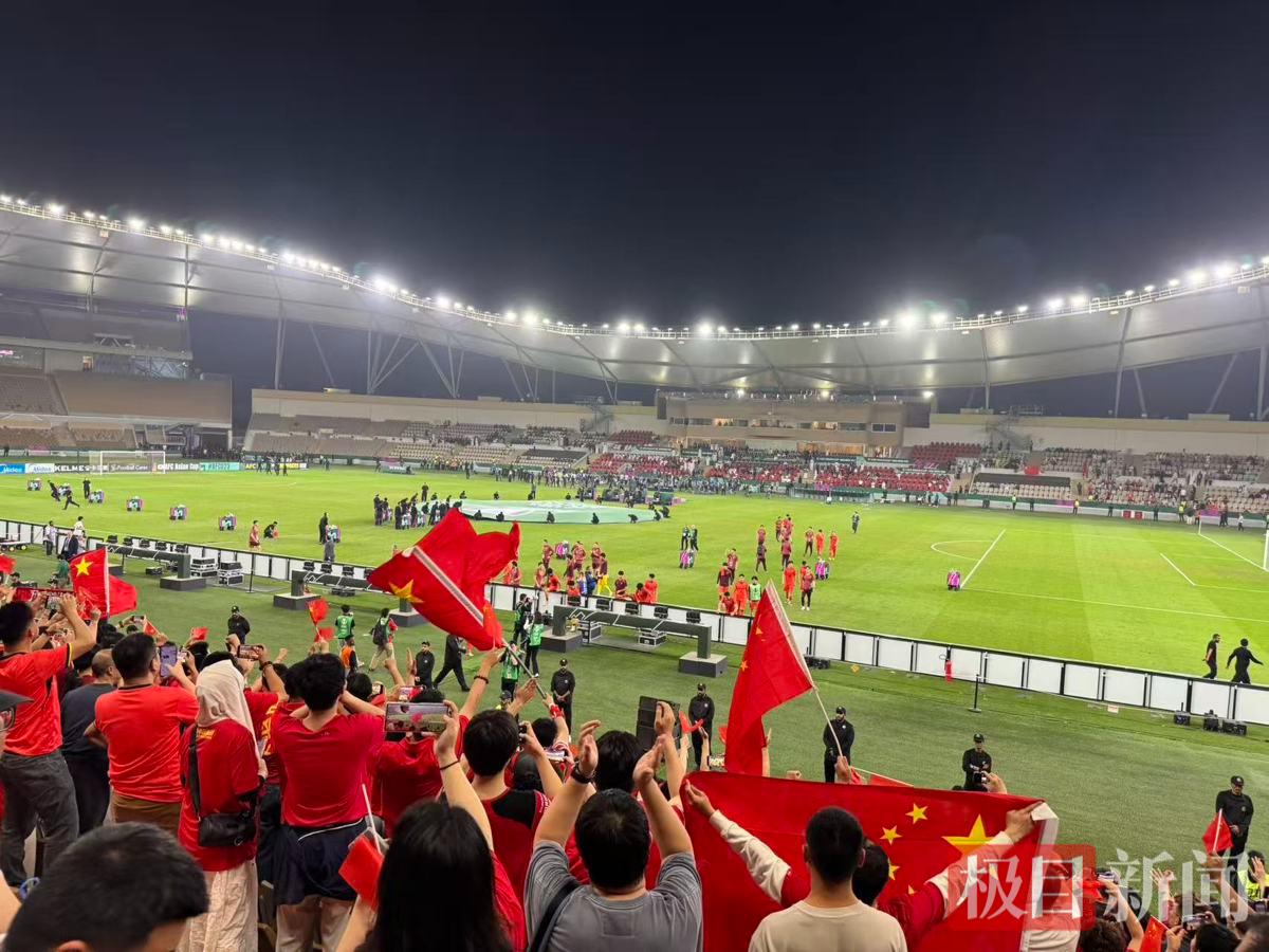 赛场内的氛围更是令人动容。当国歌奏响,全场华人自发起立,歌声铿锵有力,穿透了体育场的喧嚣。全场比赛中,“中国队,必胜”“中国队,进一个”的呐喊声此起彼伏,每一次节奏变化都紧扣比赛进程。
