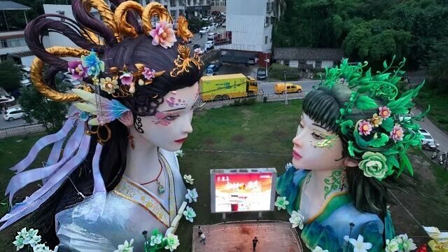 此“青城双姝”灯组是否就是去年在自贡灯会出圈的“青城双姝”灯组?2月9日,上游新闻(报料邮箱:baoliaosy@163.com)记者致电仙市镇镇政府询问此事,一名工作人员回应:“是的,我们是在(去年)国庆期间搬过来的,现在可以免费参观。”
