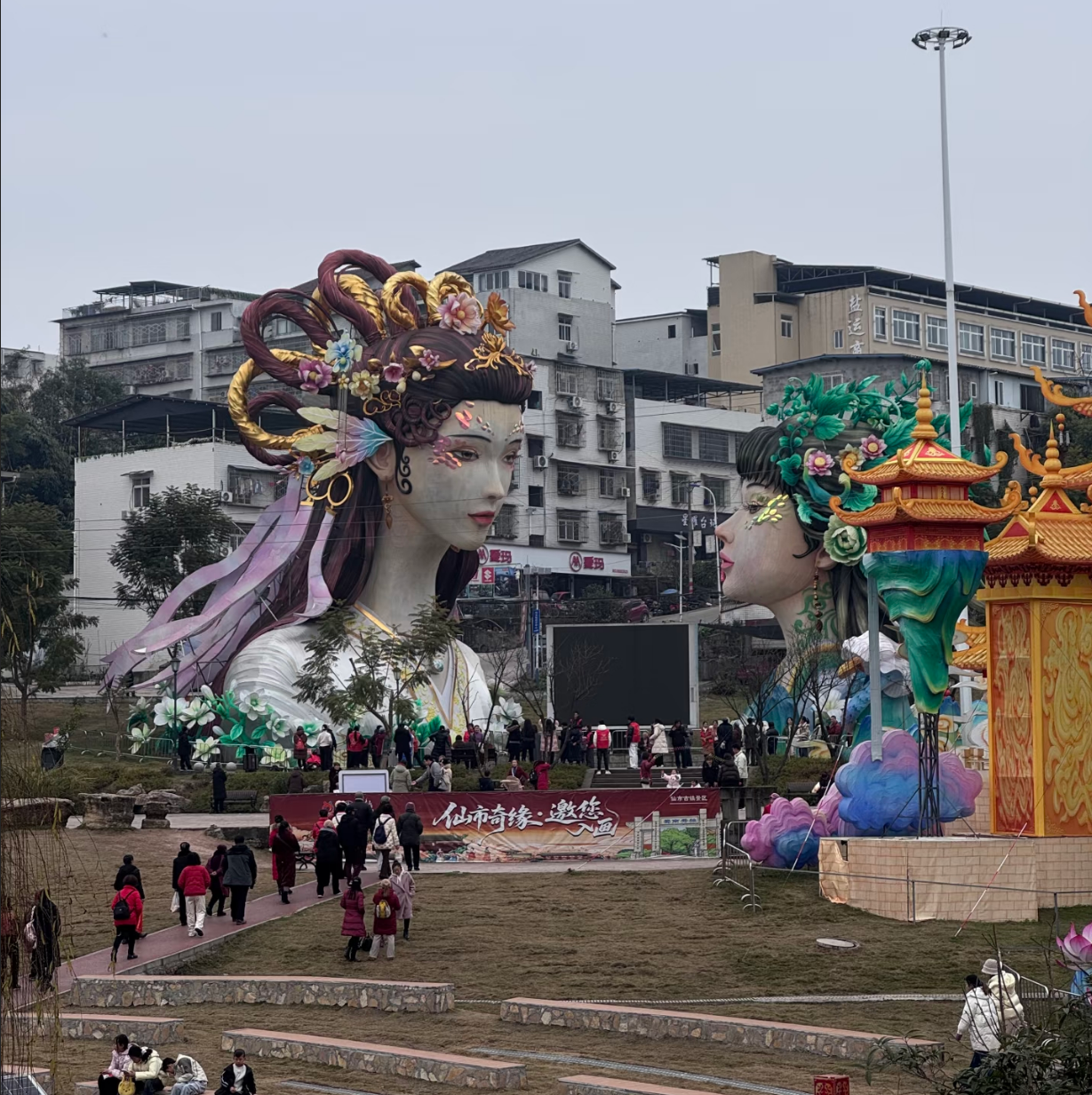 自贡市沿滩区融媒体中心曾报道,去年9月27日-10月8日,仙市古镇举办了“仙市奇缘——月满华诞・家国同圆”的双节系列活动,期间展示了“青城双姝”灯组,吸引了游客超30万人次、旅游综合收入1.8亿元。