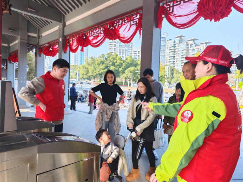 2026年春节假期,武汉东湖牡丹园年味正浓,一年一度的东湖灯会在此举办,不少市民游客前来游园迎新春。一群武汉文旅志愿者坚守在景区大门,从早到晚,穿梭在人群之中,用贴心、热情的服务,为新春佳节增添了一份暖意。
