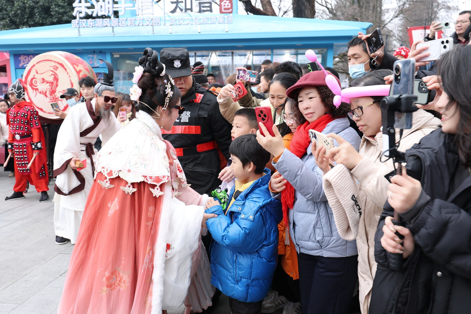 东湖湖畔,古韵与新潮交融,欢笑声与鼓点声交织,这个马年新春,东湖用一场沉浸式“穿越”,让传统文化在烟火气中“活”了起来。